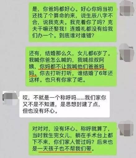 更让人觉得不可思议的是,她嫁的是一个极其迷信极其封建的家庭,公婆说她是克夫命,当初是死活不愿意,好说歹说才勉强同意,但是却不愿意办酒席,婚后还不许叫爸爸妈妈。讲到这简直让人气愤难当,一股怒气直冲大脑,有哪一个女人能受得了这样的窝囊气,这到底是一个什么样的家庭?什么样的公婆?什么样的老公?