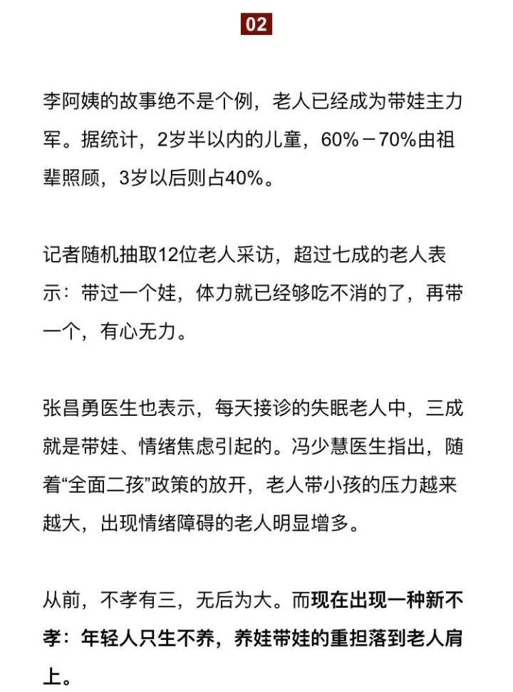 我们总是批判物质上的啃老,成年子女不能独立,吃父母的,穿父母的,压榨父母的养老钱去买车买房,摆明就不孝。但差使父母帮带孩子,无异于让他们退休再上岗。