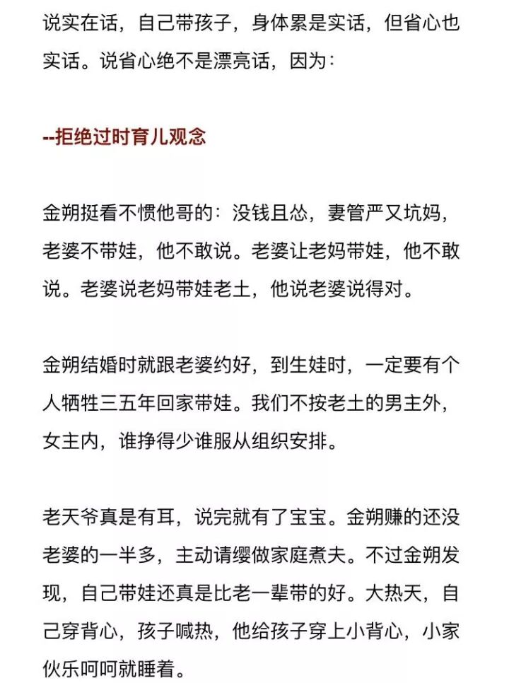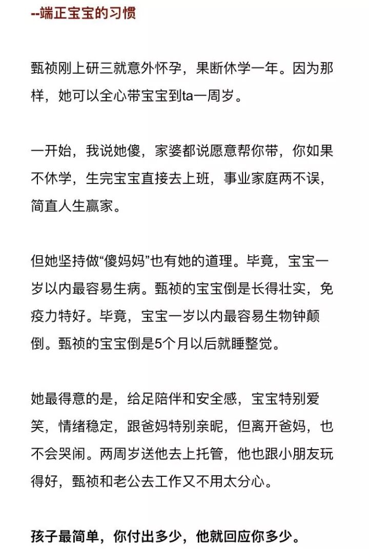 很喜欢茨威格的一句话:“上帝给我们赠送的每一件礼物,都暗中标好了价格。”即使亲爹亲妈帮你带娃,也难尽如你意。想要完全合心意,累一点,自己带就好。