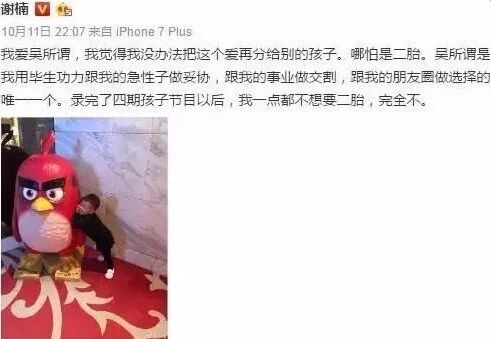 前不久他老婆表示自己一点都不想生二胎: