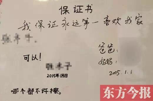 据东方今报,近日,网友“滴答”在网上晒出一张《保证书》,《保证书》上她和老公向女儿保证:我保证永远第一喜欢我家大宝。女儿在下面签字“可以!”然后女儿、父母双方签名、写保证日期。