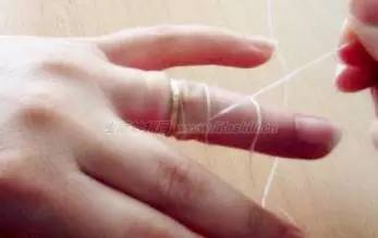 步骤6:用线把手指指关节以上缠起来。不能太紧,让戒指可以通过就可以了