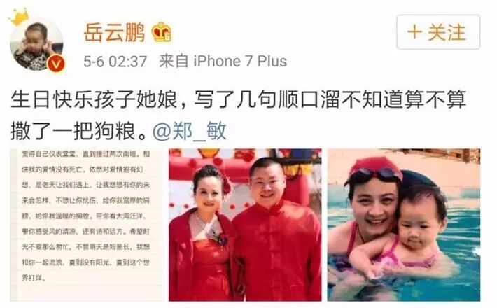 这已经不是夫妻俩第一次秀恩爱了,上个月小岳岳就在妻子生日时表白,撒了一地狗粮。