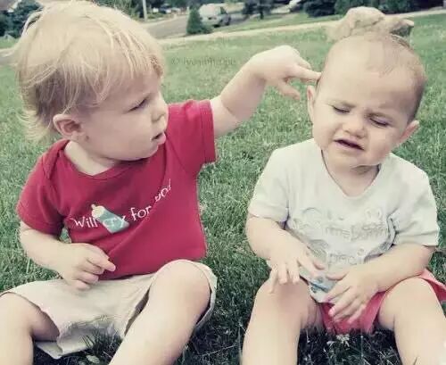 两个宝宝是对方最好的依赖,最能帮得上忙,最不离不弃的手足。