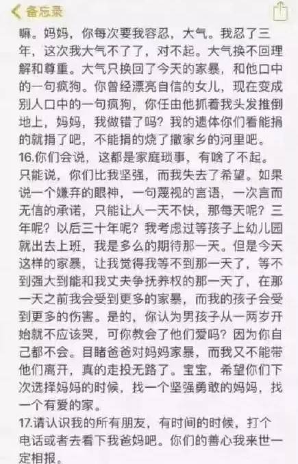年初,一个31岁的妈妈带着两个孩子一跃而下,留下15页的遗书在朋友圈狂转。