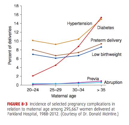 人的年龄越大,自然疾病也越多。女性在35岁以后,容易有一些内外科合并症,比如说甲亢、高血压、糖尿病,可能还会有一些其他的内外科疾病,这样也会使得孕期变得不那么顺利。因此,高龄孕妇在妊娠早期,比年轻孕妇更容易发生流产。