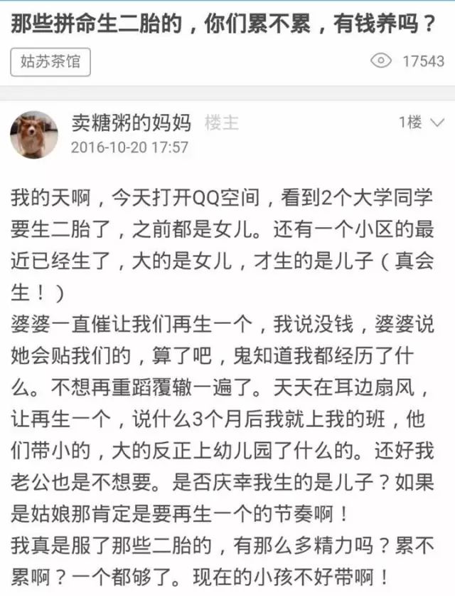 这是某网站上一个妈妈对二胎家庭的疑问。