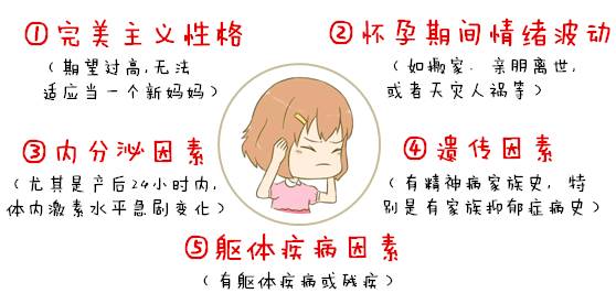 产褥期抑郁症的确切病因不清楚,目前认为可能与下列因素有关: