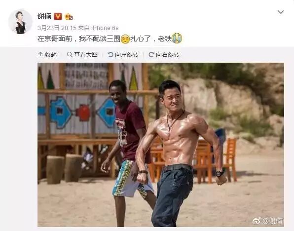 谢楠还默默把各种人际关系都打点得十分妥帖。吴京是个大写的直男,虽然微博里也有和其他人的互动,但跟名嘴老婆比可就差远了。《战狼2》上映,每个明星看完发微博,都会被谢楠转发,言辞恳切地一一致谢。她还跟很多演员、歌手、主持人,甚至德云社的相声演员,都保持着好朋友关系,拍戏或探班时对片场的工作人员也是出了名的友好。