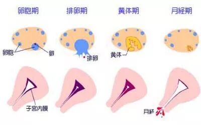 子宫内膜厚度随着卵巢周期变化,在卵巢周期中,当卵巢内有卵泡发育及成熟时,在卵巢激素的作用下,子宫内膜出现增生现象;排卵后,在卵巢黄体分泌孕激素和雌激素的作用下,试增生的子宫内膜有分泌现象;卵巢黄体退化后,由于雌激素及孕激素量的减少,子宫内膜失去了支持出现坏死和剥落,表现月经来潮。