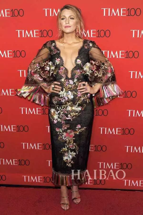 布莱克·莱弗利 (Blake Lively) 2017年4月25日出席Time 100 Gala;连衣裙:玛切萨 (Marchesa) 2017秋冬系列
