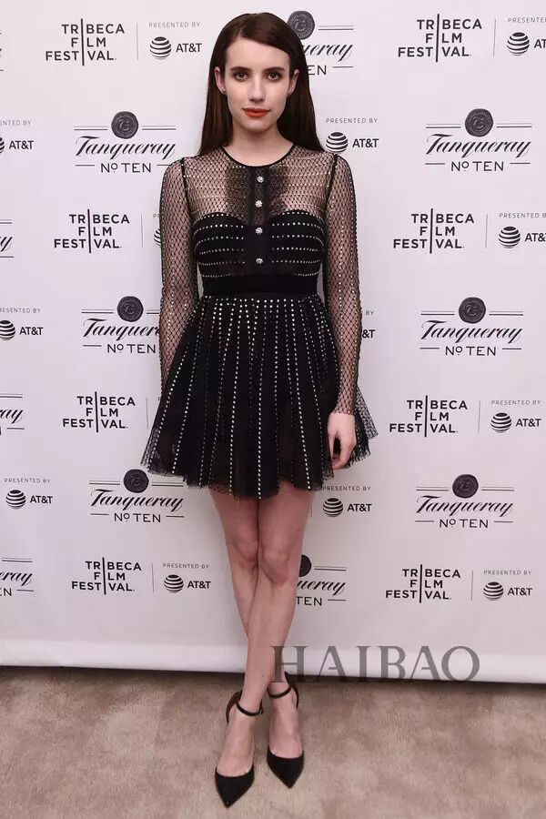 艾玛·罗伯茨 (Emma Roberts) 2017年4月27日亮相翠贝卡电影节;连衣裙:哲学 (Philosophy)