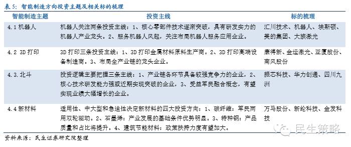 4、在智能制造方面,关注机器人、3D打印、北斗和新材料;