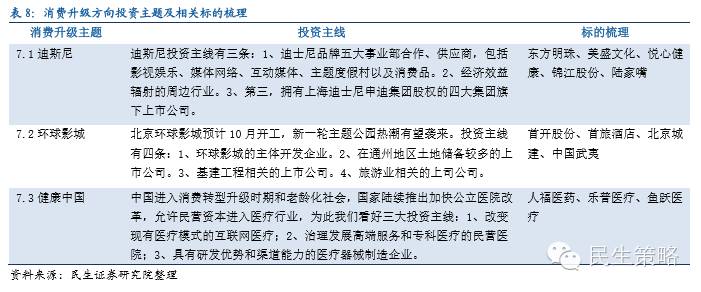 7、在消费升级方面,关注迪士尼、环球影城和健康中国;