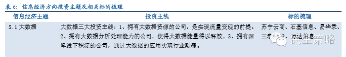 5、在信息经济方面,关注大数据、智慧物流和网络安全;