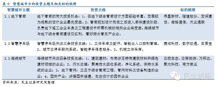 3、在智慧城市方面,关注地下管廊、智慧停车场、海绵城市;