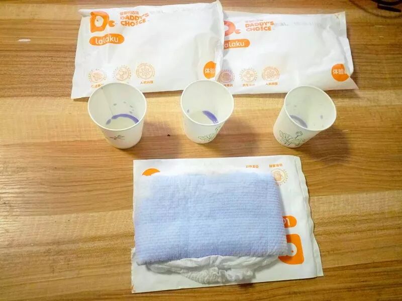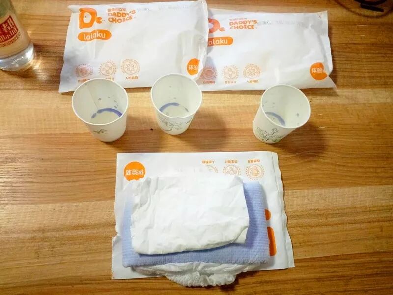 爸爸的选择纸尿裤吸水测试:37度的温水(接近宝宝尿液的温度)