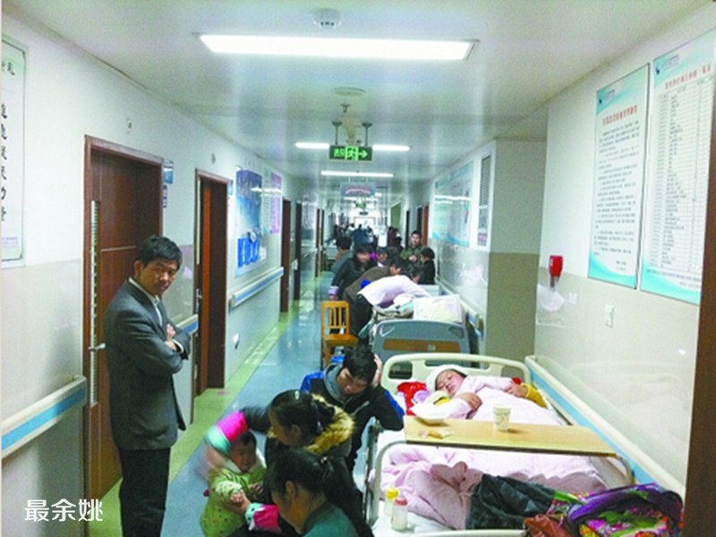 “几天前,产妇最多的时候床位放到电梯门口。”妇产科的护士长说,“电梯和电梯之间的墙壁前,见缝插针,电梯门一开,两边就是床位。”产妇多了,医护人员的工作量也随之增加,为保证服务质量,加班加点是常有的事。