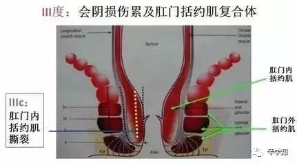 Ⅲ度会阴裂伤:会阴皮肤、粘膜、会阴体、肛门括约肌完全裂伤,多伴有直肠壁裂伤。