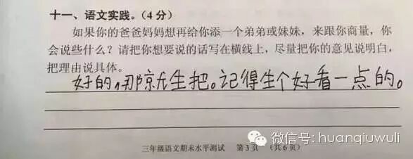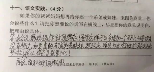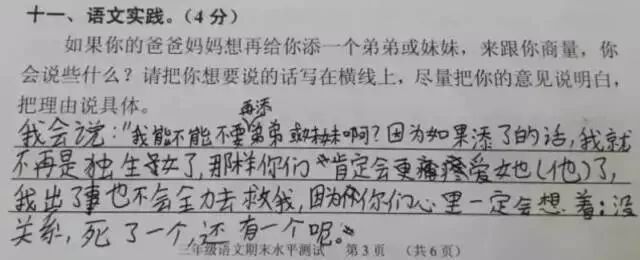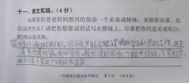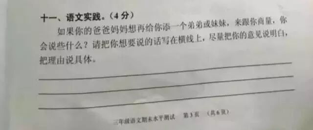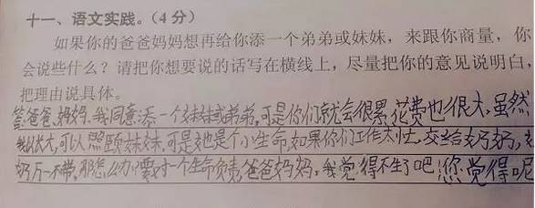 比如广州某小学生的语文试卷里就有这么一道关于二胎的语文实践题——