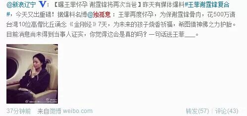 此外,独孤意还透露,王菲为保谢霆锋骨肉,不惜花500万请台湾的10位高僧比丘诵念《金刚经》7天,为未来的孩子烧香祈福,希图借神佛之力护胎。