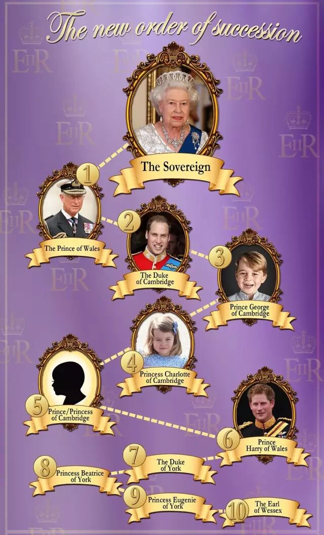 如果宝宝出生,不论是小公主还是小王子,这个孩子都将成为皇室的第五位顺位继承人...排在哈里王子之前,和小公主夏洛特之后…