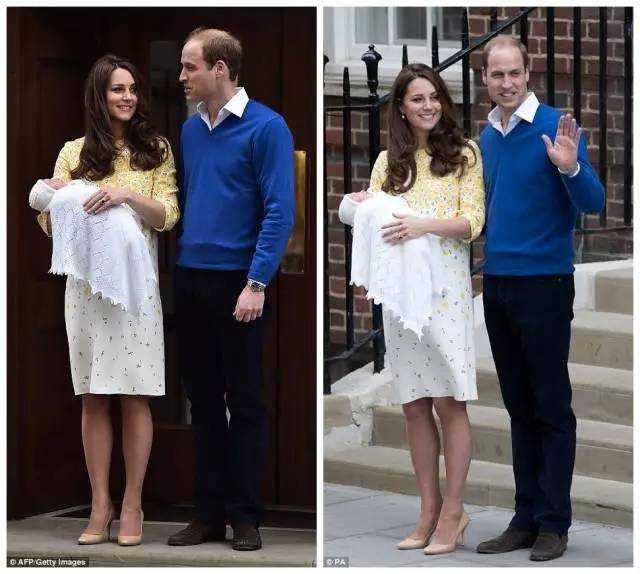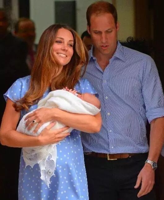 当时媒体的照片里,威廉一脸担心老婆能不能扛得住...凯特却笑容满面,抱着襁褓中的小乔治,走路都带风...