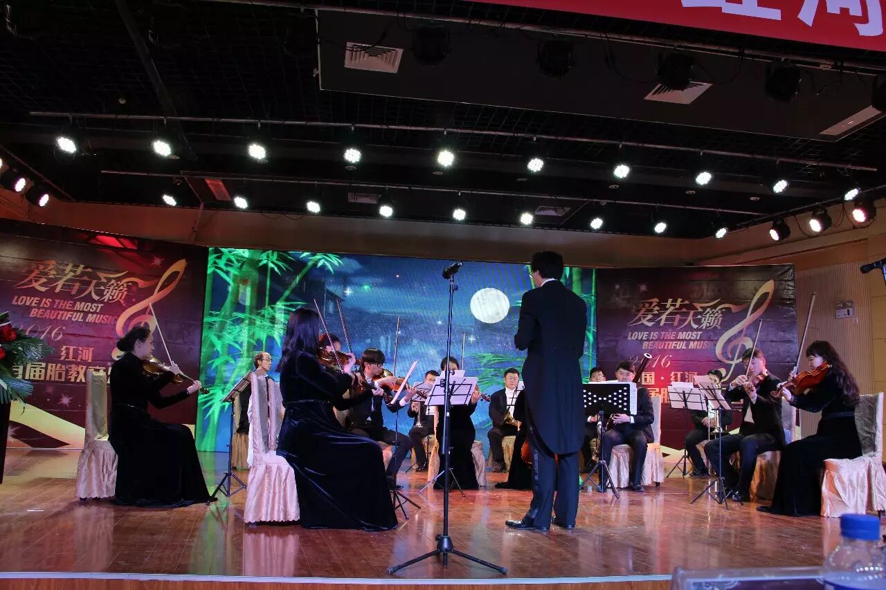 为了突出音乐胎教对孕妈咪们的重要性,1月22日,蒙自市妇联与红河妇产医院在蒙自五大中心青少年宫联合举办了一场“2016爱若天籁•红河首届胎教音乐会”。音乐会由昆明聂耳交响乐团倾情演奏。