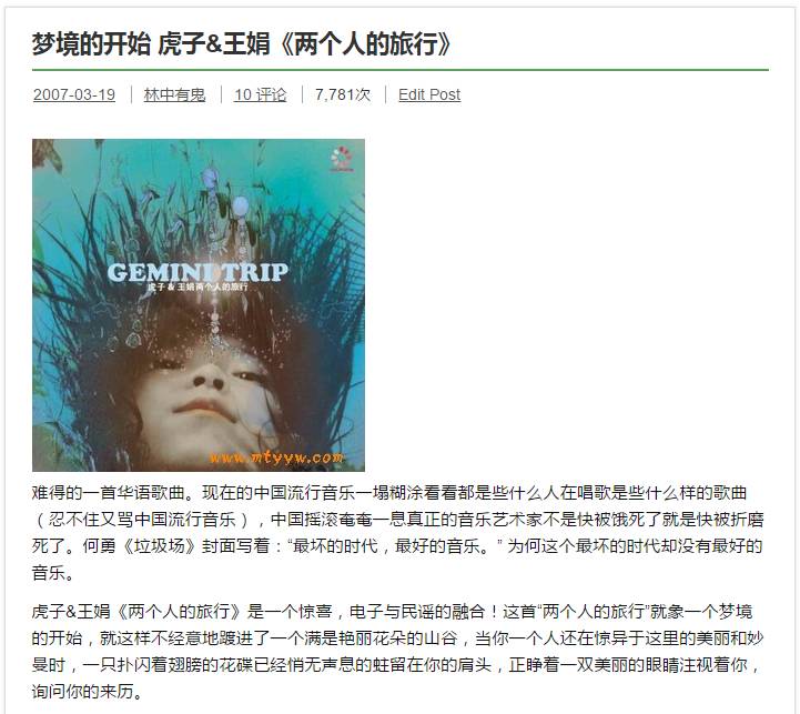 时间回到更早的2007年,惊喜地发现了王娟和虎子合作的《两个人的旅行》,当时血气方刚的我激动了。