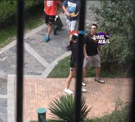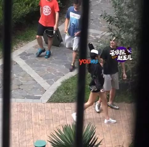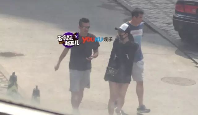 而林丹和神秘女身后的红蓝CP大兄弟就在楼下等