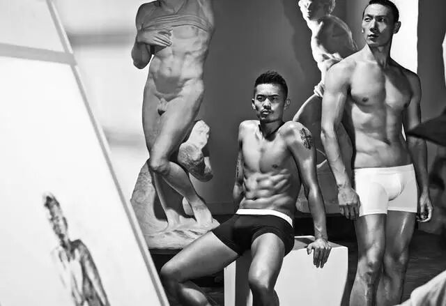 全部系列都是林丹自己做模特,人鱼线一览无余。