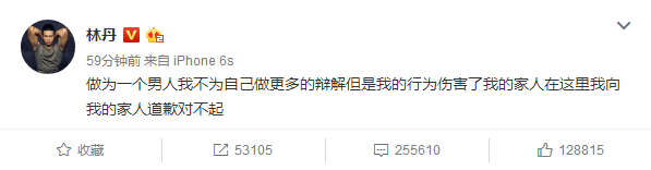 “做为一个男人我不为自己做更多的辩解但是我的行为伤害了我的家人在这里我向我的家人道歉对不起”