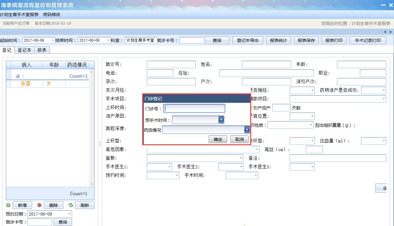 一直以来,计划生育手术信息的记录需靠我们医生护士填写手术信息,现在终于可以告别那厚厚的登记本了~\(≧▽≦)/~计划生育医疗管理系统在开发过程中,从实用和智能考虑,具有预约登记,手术记录,统计查询的功能,确保系统符合临床需要,最大限度减少临床医生的工作量。
