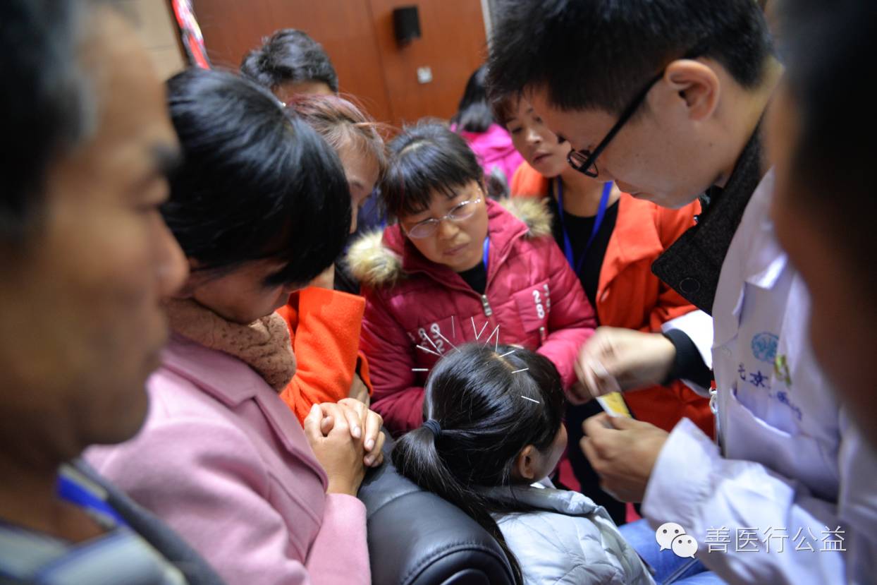 治疗结束后孩子们坐成一排,由善医行带教志愿者统一为他们起针。善医行梅姐一一询问他们的病情和治疗后的感受,孩子们都表示感觉好多了,都舍不得走,还想再次接受老师们的治疗。梅姐说:“善医行还会在楚雄留六天,大家每天都可以再来请老师治疗。即使善医行培训组走了,善医行的技术和爱的精神也会留在楚雄留在云南,大家可以找到本次参加培训的300名善医行学员继续接受治疗。”