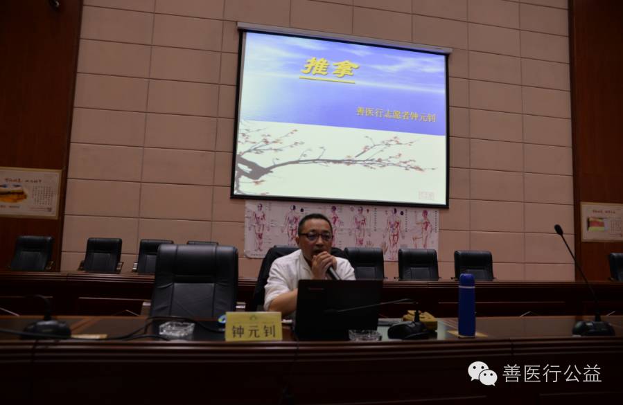 晚上的课是善医行资深志愿者钟元钊老师的推拿课。钟老师先和大家探讨了村医行医中的风险和平时的工作心态问题,然后带领大家一起练习推拿手法。300学员与老师同时互动,课堂气氛生动活泼,现场演练更便于学员们对手法的记忆。