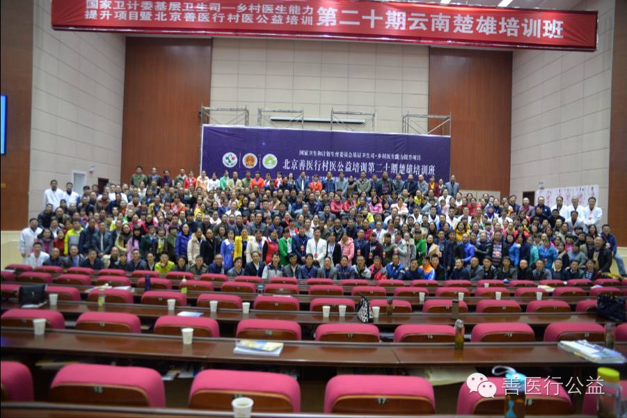 由国家卫生和计划生育委员会基层卫生司主办,中国医药卫生发展基金会、北京善医行健康发展中心承办的国家卫生和计划生育委员会基层卫生司-乡村医生能力提升项目暨北京善医行村医公益培训第二十期云南楚雄培训班,于2016年11月24日在云南省楚雄州州委党校开班,并于11月29日圆满结束。