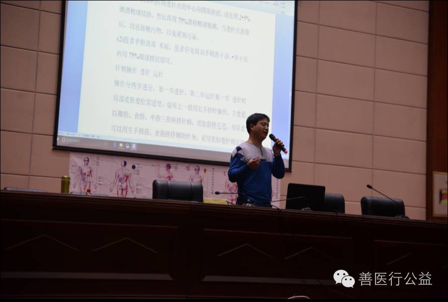 晚上迎来了善医行资深志愿者贾明聚老师介绍《留置针法》。贾老师的课一向受善医行学员的欢迎。从行医心得讲到理论,从理论讲到技术,再到演示实操,学员们注意力高度集中。