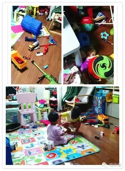 就在前些天,我在微信朋友圈发了这几张照片,并配文字:“我现在居然能忍受家里乱成这样,完全没有下脚的地方了。”朋友们的回复纷纷表示惊讶和同情。没办法,家里有俩娃,杀伤力就是这么大。请不要跟我说什么要培养孩子的好习惯,玩儿完的玩具要放回原处之类的,那都是些屁话。给你两个这么大的娃,你给我培养一个试试。任凭你把家里收拾得多整洁,只要两娃到家,那就是一瞬间的事儿,所有玩具全都被捣出来,尸野遍地。光是收拾东西也就罢了,两娃还经常为了抢一个玩具而发生争抢,你还得边跟着屁股后面收拾,边维护和平。那真真是身累心更累。