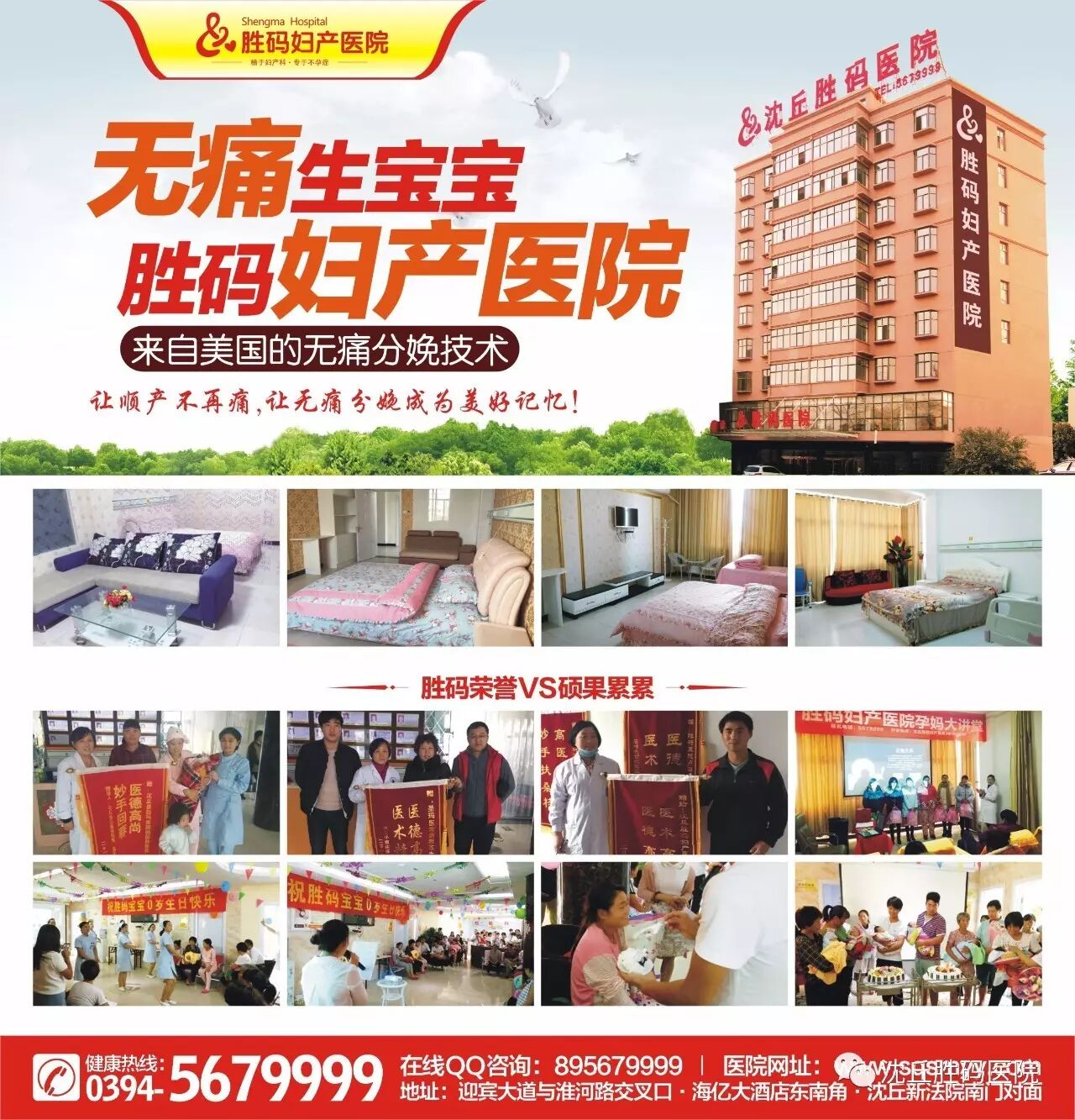 温馨提醒 各位准妈们,想无痛分娩就来沈丘胜码妇产医院吧!热线0394—5679999,或者添加QQ:895679999,微信:sqsmyy,了解详情吧!
