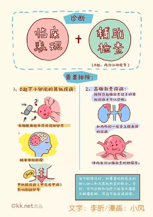 大部分多囊卵巢综合征患者月经不规律,推后两个月或者三个月很常见,甚至出现闭经情况,少部分人则出现不规则出血。也有患者以前月经规律,但近两年月经不规律。遇到这种情况,一些医生则会运用一些激素药物将她们的月经周期调得很正常,这看起来似乎很完美,但从实际来看意义不大,因为通过激素调节的“正常”月经,只是一种表面现象,待停药后大多又恢复到以前的状态。