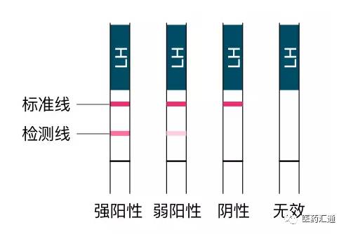 如果检测线有颜色但比标准线要浅很多,说明LH值开始升高,你已经处于弱阳性阶段,这时就要注意了,每4小时就得测一次,你会发现检测线的颜色越来越深。