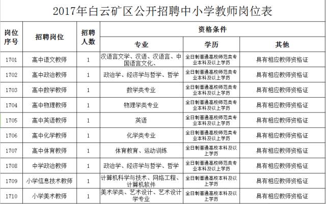 1、2017年白云矿区经公开招聘中小学教师岗位表