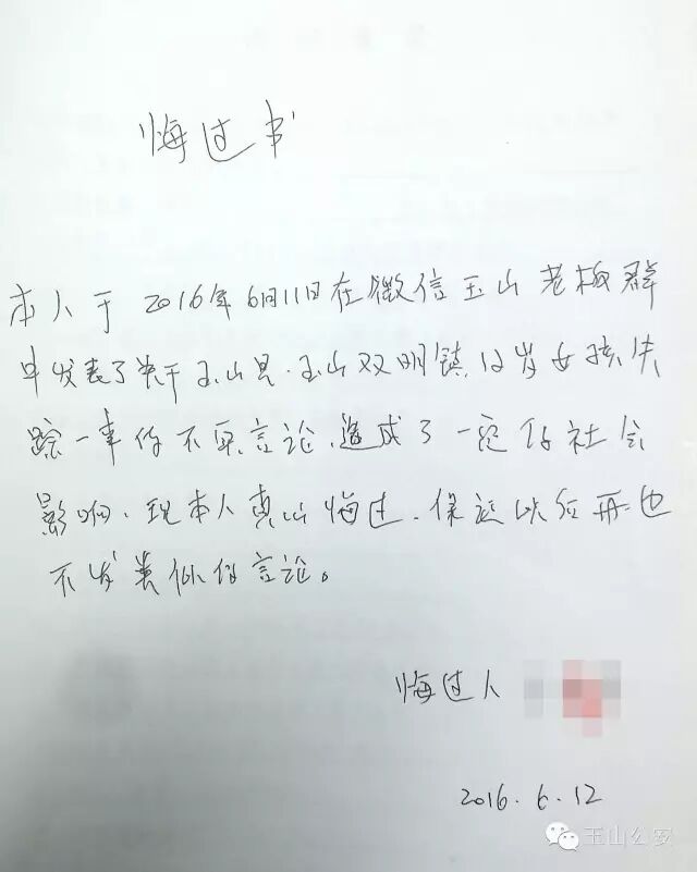 玉山县公安局依法严惩“玉山一小学老师强奸女学生”谣言发布者