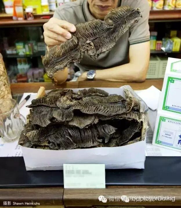 除此以外,广州地区对蝠鲼鳃的高消费需求是全球蝠鲼被捕捞的另一个重要原因。人们误以为蝠鲼鳃有药用价值,但其实通过研究发现,蝠鲼鳃的重金属含量严重超标,经常食用对人体有害无利。