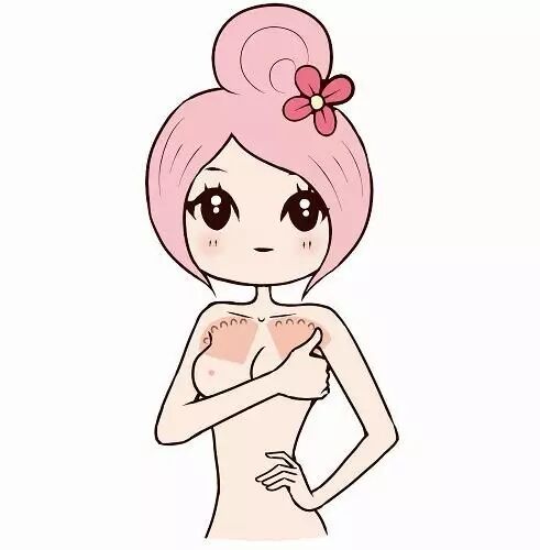 这个动作有利于淋巴排毒,帮助消除副乳。按摩时腋下与胸部的肌肉很有可能会感到疼痛,别紧张,这说明你按到正确的位置上了。