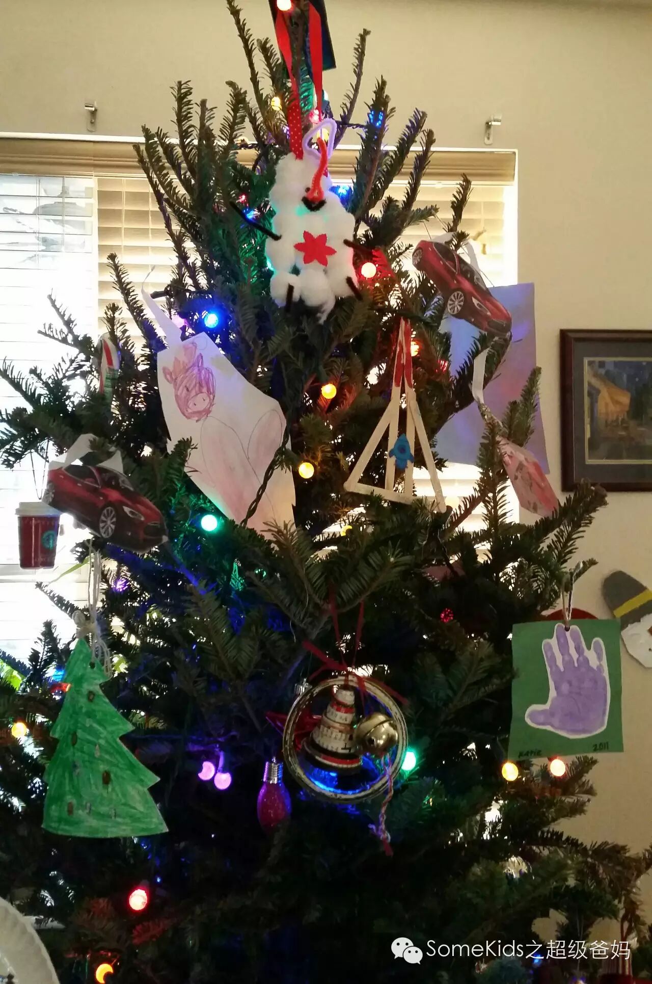 没孩子前,我和先生看到有孩子的朋友家里的圣诞树上挂着歪歪扭扭的装饰品,我们私下会觉得真是浪费了一棵好树,没想到只是短短几年的功夫,我们也成了他们,会带着爱和骄傲欣赏这些歪歪扭扭的艺术。所以一个显而易见的观点就是:父母对孩子总是偏心的。