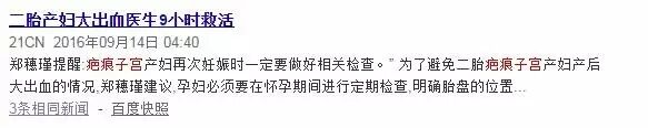 苏放明提醒,如果有子宫瘢痕,孕妇在妊娠后要尽早去确定胚胎着床位置,如果着床在上次剖宫产瘢痕附近,那有九成多概率发生凶险性前置胎盘。对于二胎可能导致的风险孕妇切不可疏忽大意。