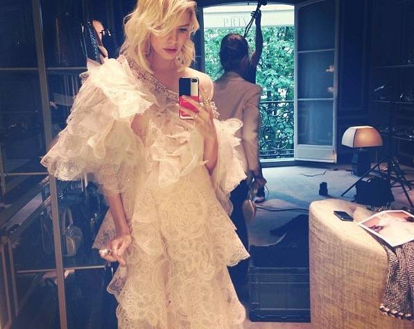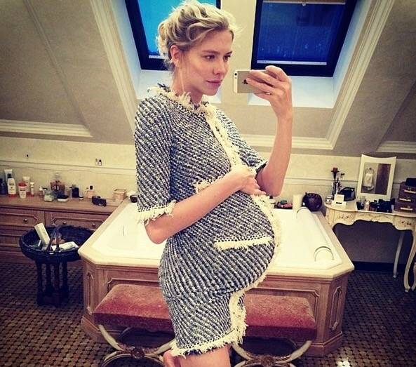 她还是照常每天华服美衣,还穿着高跟鞋出街——这是大多数孕妇绝对不敢尝试的事情。