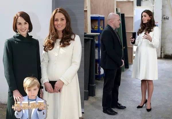 到了怀孕中后期,王妃的穿着更是几乎只有X型和A型。下面几张是她怀孕8个月左右的照片: