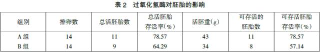 2.1 日粮中添加过氧化氢酶对胚胎的影响